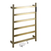 Полотенцесушитель электрический, 480 х 730 х 90 мм, лесенка 6 перекладин, 75 W, из нержавеющей стали, сенсорное управление с таймером до 24 часов, цвет матовое ЗОЛОТО.