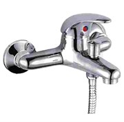 Хромированный смеситель для раковины в ванную комнату или на кухню. С двумя вентильными ручками регулировки холодной и горячей воды. Керамический картридж и гибкая подводка в комплекте.