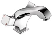 Хромированный смеситель для раковины в ванную комнату или на кухню. С двумя вентильными ручками регулировки холодной и горячей воды. Керамический картридж и гибкая подводка в комплекте.