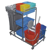 Обычно профессиональное уборочно-моечное оборудование покупается для работников клининговых компаний. Оно включает в себя ведра на колесах, тележки с необходимым инвентарем и предупреждающие знаки. Оборудование для уборочных работ не только облегчает труд и избавляет от необходимости поднимать тяжелые емкости с водой, оно значительно ускоряет процесс уборки.