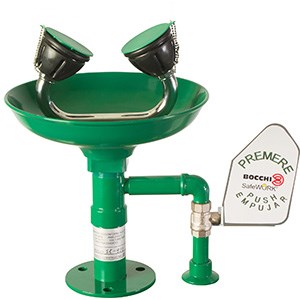 Аварийная раковина для промывки глаз предназначена для заводов, фабрик, лабораторий, где есть риск нанесения здоровья рабочему персоналу от огня, кислот, и прочих химических или радиоактивных реагентов. Приводится в действие с помощью бокового рычага.