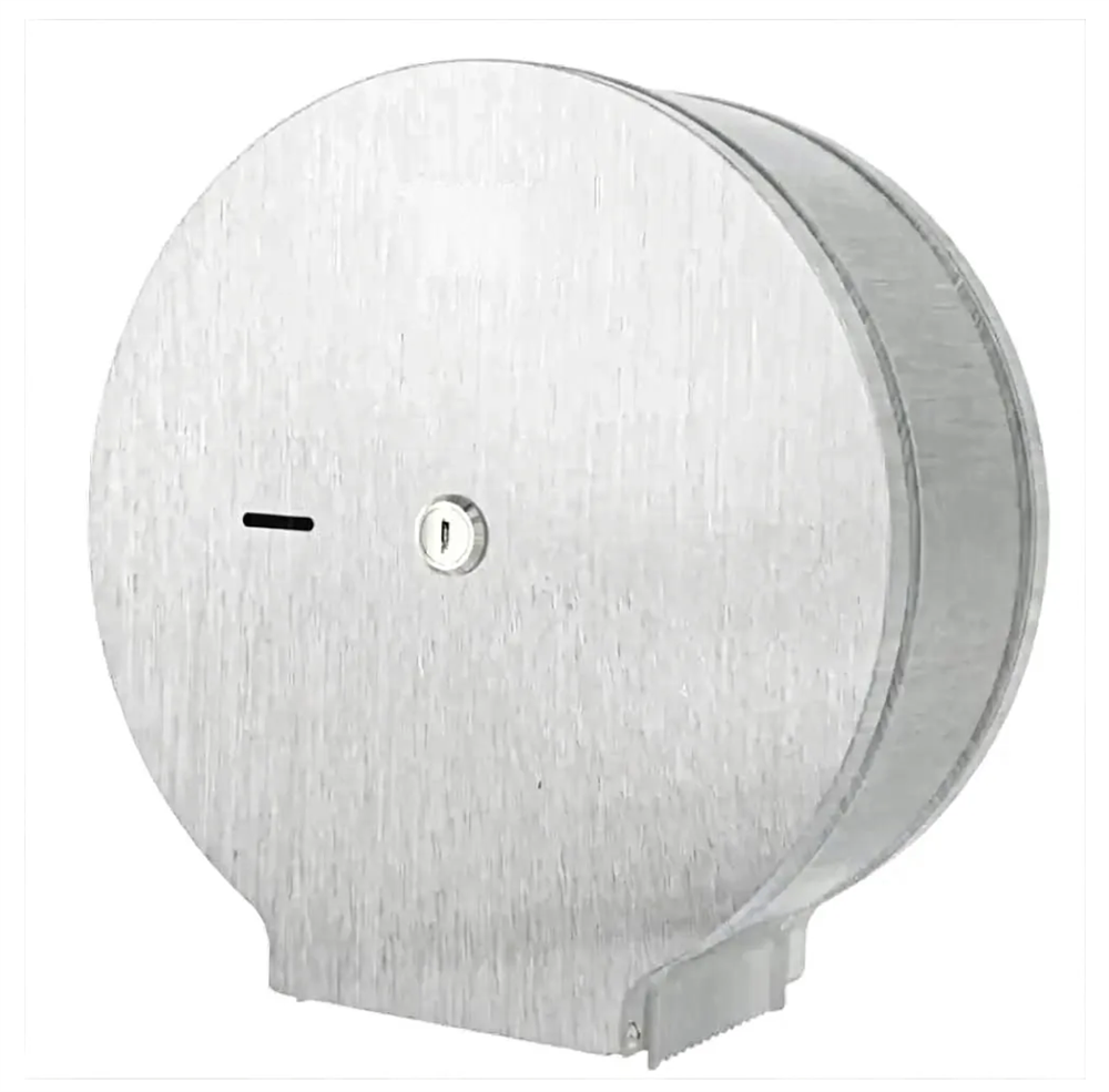 Диспенсер-дозатор для туалетной бумаги в больших рулонах из нержавеющей стали в матовой полировке. Сталь 201.