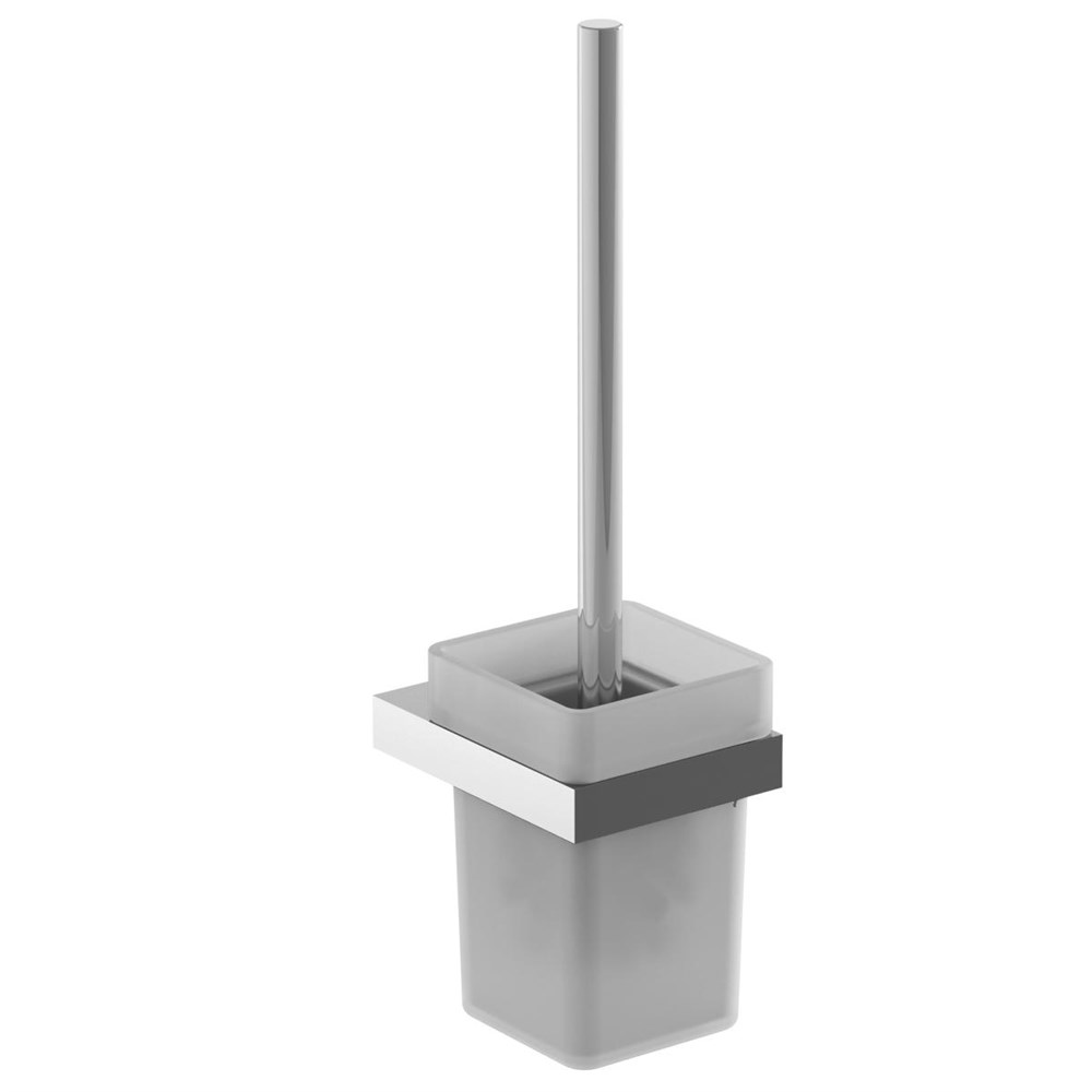 Ёршик для унитаза в стекляном стакане и держателем из нержавеющей стали. Подходит для общественных мест.