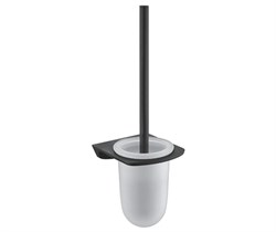 Ершик с настенным крепежом, состоящий из матового стеклянного стакана, самого ершика и настенного крепежа, сделанного из металла, покрытого PVD материалом. Ершик изготовлен из прочных материалов и прекрасно подойдет для интерьеров премиум класса.