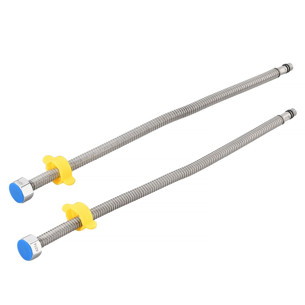 Гибкая сильфонная подводка для воды для подключения смесителей. Выполнена из нержавеющей стали марки SUS304. В комплекте два гофрированных шланга длиной 40 см с резьбой 1/2”х М10.