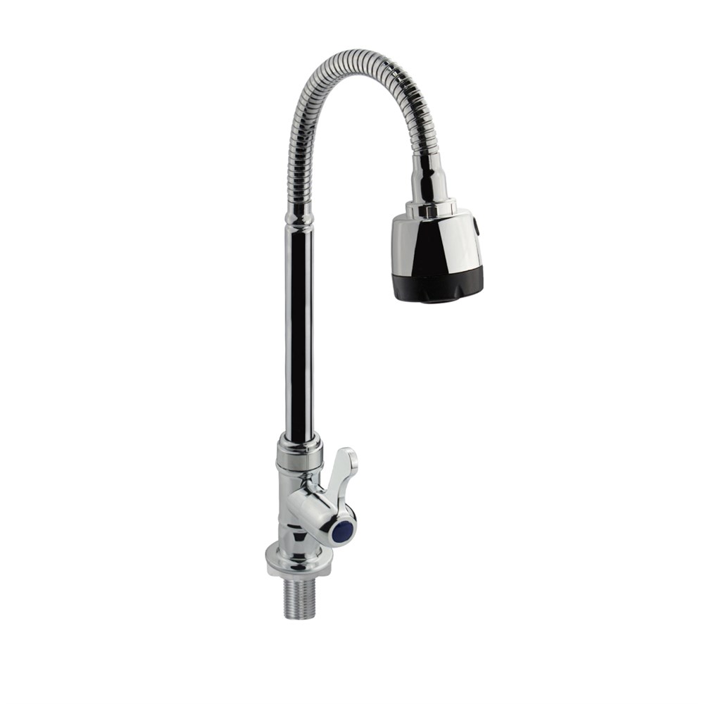 Кран на одну воду, гибкий излив, металлокерамика, хромированный, из высокопрочного пластика АБС