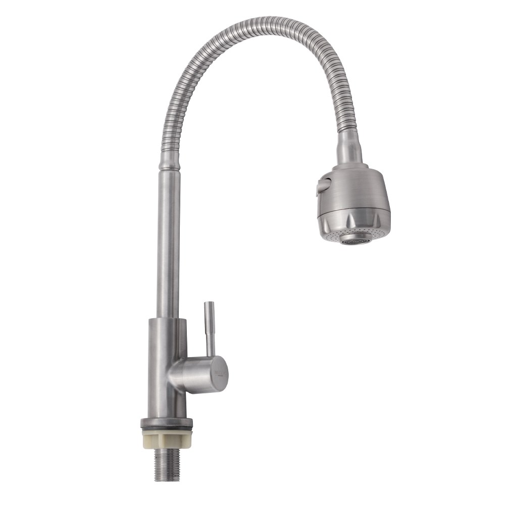 Кран на одну воду, гибкий излив с большим распылителем, из нержавеющей стали марки 304
