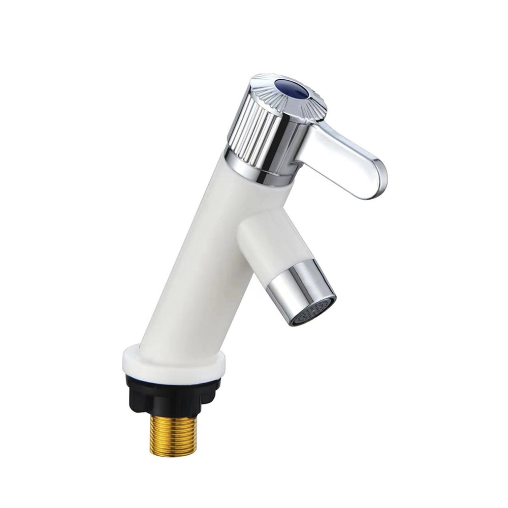 Кран на одну воду на раковину, металлокерамика, из высокопрочного АБС пластика, наклонный, цвет БЕЛЫЙ.