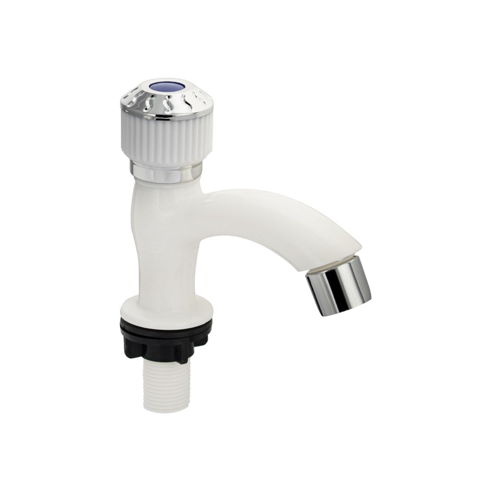 Кран на одну воду, на раковину, металлокерамика, модель мини, из высокопрочного АБС пластика, цвет БЕЛЫЙ.
