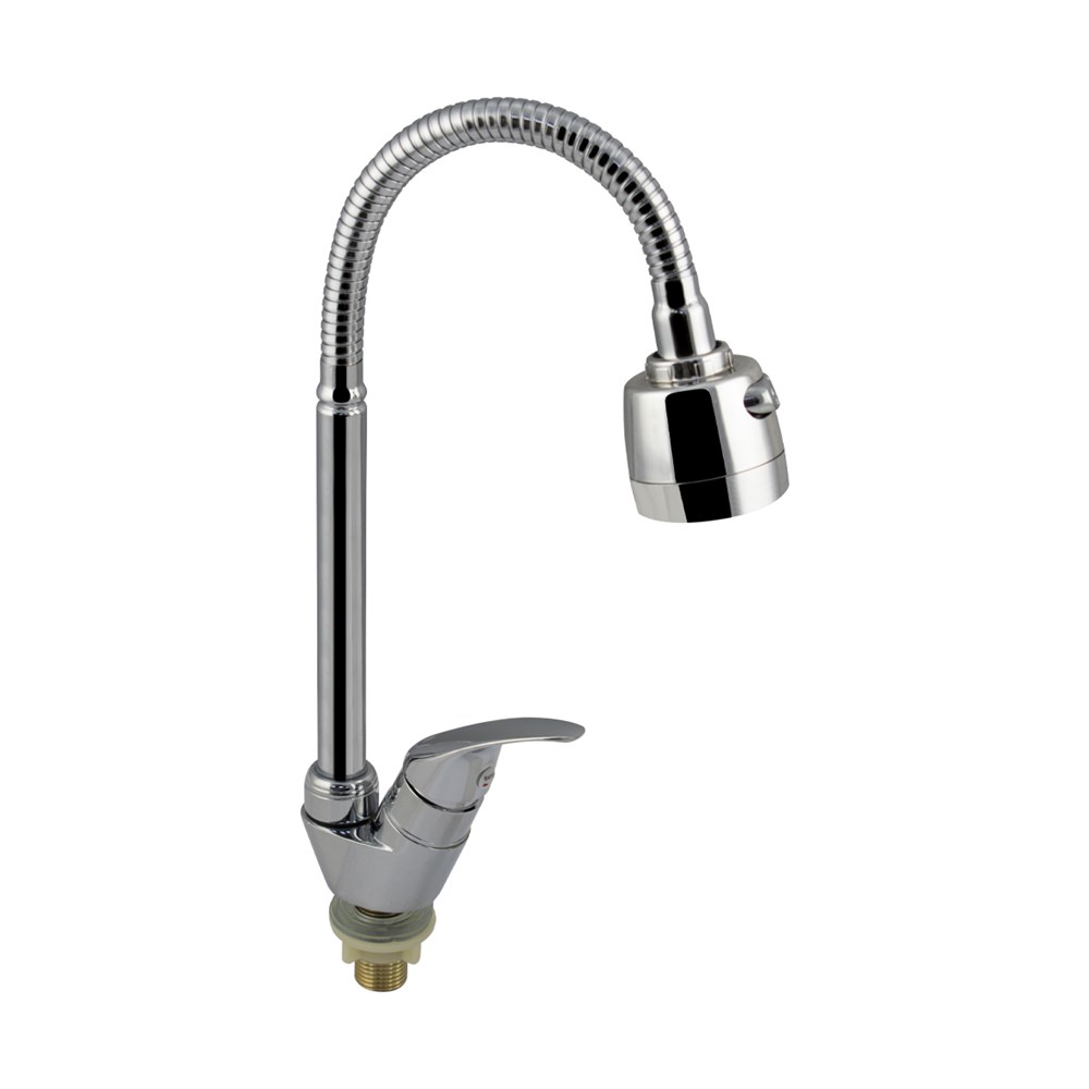 Кран на одну воду шаровый, высокий гибкий излив с двухрежимным аэратором, хромированный