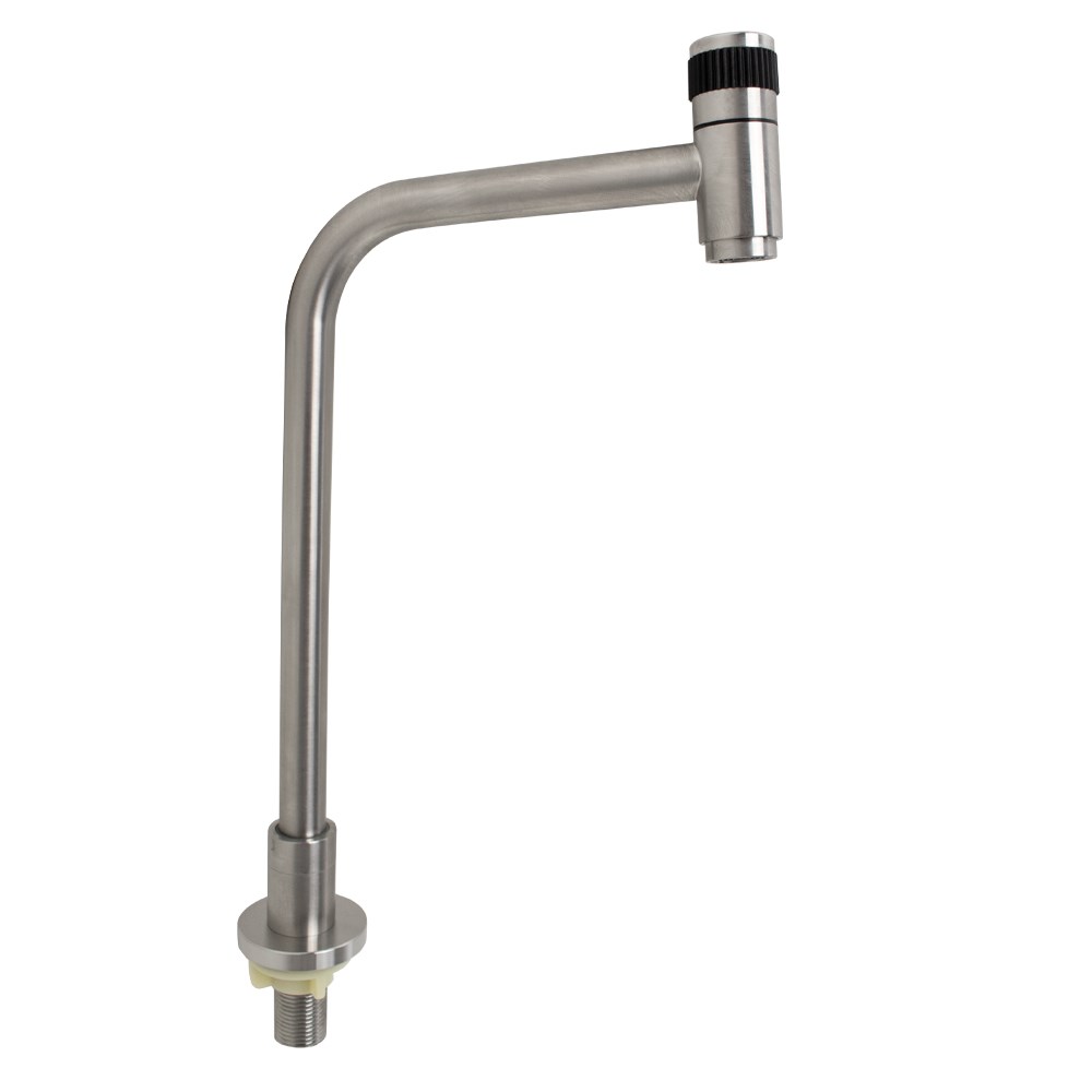 Кран на одну воду тонкий , высокий излив , ручка перекрытия воды на изливе , из нержавеющей стали марка 304