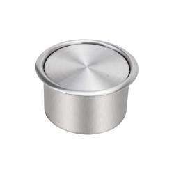 Кольцо для установки в столешницу для мусорной корзины с крышкой из нержавеющей стали,матовой отделки. ? С полированными краями для безопасного использования. ? Прочность и устойчивость к коррозии. КОМПОНЕНТЫ И ТЕХНИЧЕСКИЕ ХАРАКТЕРИСТИКИ ? Изготовлен из сатинированной нержавеющей стали с крышкой. ? Размеры: высота 90 мм диаметр отверстия ?140 мм. ? Диаметр с бортом: ?170 мм.