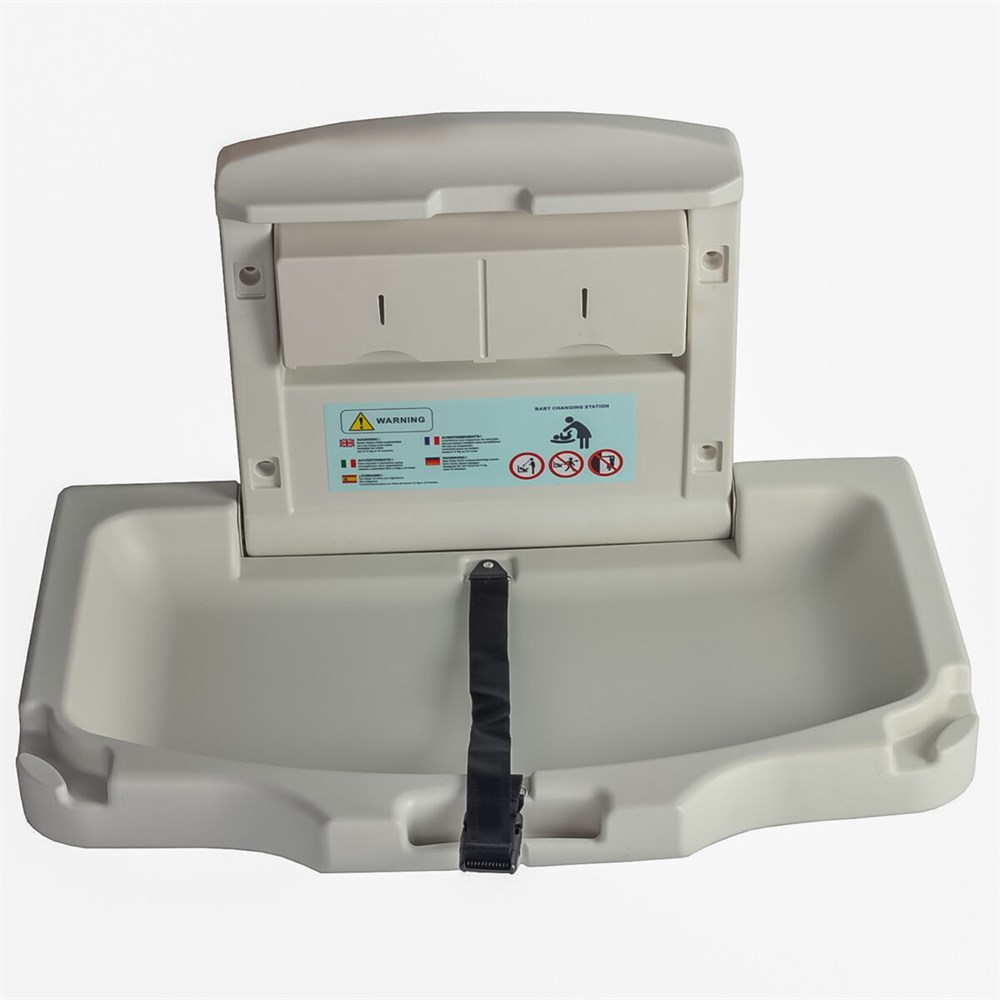 Стол для пеленания в общественном месте из прочного пластика Ksitex J-8001. Крепится на стену, (крепеж в комплекте). Фиксируется в закрытом и открытом положении. Газовый амортизатор позволяет плавно открыть и закрыть столик