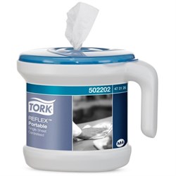 Переносной диспенсер Tork Reflex с полистовым отбором для рулонов с центральной вытяжкой - это решение, которое всегда под рукой. Диспенсер прост в использовании, гигиеничный и надежный. Благодаря прочной ручке диспенсер легко носить с собой или вешать на тележку. Поставляется с одним двухслойным белым рулоном с центральной вытяжкой Reflex.