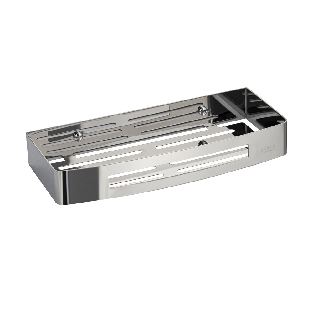 Полочка для флаконов - прямоугольная, с литым дном, из нержавеющей стали ХРОМ