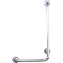 Поручень угловой левый под прямым углом 90* для людей с ограниченными возможностями. Изготовлен из нержавеющей стали AISI 304. Имеет 3 точки крепления, белый. Диаметр ? 32 мм, толщина 1,5 мм. 38 мм от стены.