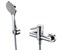 КомплектацияЛейка 3-функциональная с системой защиты от известковых отложений, Шланг металлический 1500 мм, подключение к лейке, Фиксированное настенное крепление для душа