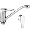Смеситель для кухни , прибор оснащен одной рукоятью чтобы регулировать напор воды. Наличие аэратора в смесителях поможет обеспечить равномерную подачу воды , а также ее смягчение. Специальная сетка в устройстве отфильтровывает нежелательные примеси. Прибор выполнен в модном современном стиле, необычная модель в дизайнерском исполнении. Основной материал в приборе - латунь, это надежный материал высочайшего качества, который обеспечивает великолепное напыление хромированного покрытия. Его округлая форма позволяет прибору выглядеть максимально привлекательно и стильно для глаз человека. В данном приборе излив имеет возможность вращения, что повышает практичность. Установка модели осуществляется на одно отверстие под смеситель. Присоединительный размер 1/2.