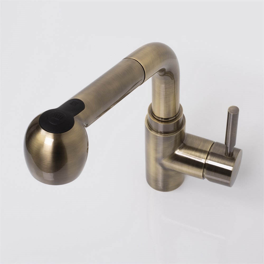Смеситель имеет в комплекте выдвижную лейку. Корпус смесителей произведен из высококачественной латуни с содержанием меди не менее 59%. Латунь является наилучшим материалом для изготовления корпуса смесителей, характеризуется долговечностью и прочностью. В смесителях используются керамические картриджи 35 мм, Sedal (Испания). Все картриджи выдерживают 500 000 рабочих циклов (открытий / закрытий). Смесители оснащены встроенным пластиковым аэратором Neoperl CASCADE (Германия) для равномерного распределения струи. Аэраторы Neoperl CASCADE отличаются прочностью, не подвержены разрушению и образованию известковых отложений. Смесители для умывальника и кухни в комплекте имеют гибкую подводку Sedal (Испания), с резьбой G?.;Смесители для кухни сочетают в себе единство чистоты, функциональности, удобства и красоты.