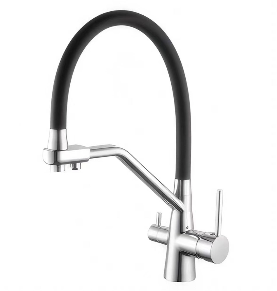 смеситель для кухни с подключением фильтра питьевой воды.латунь+цинк (хром +чёрный силикон носик)