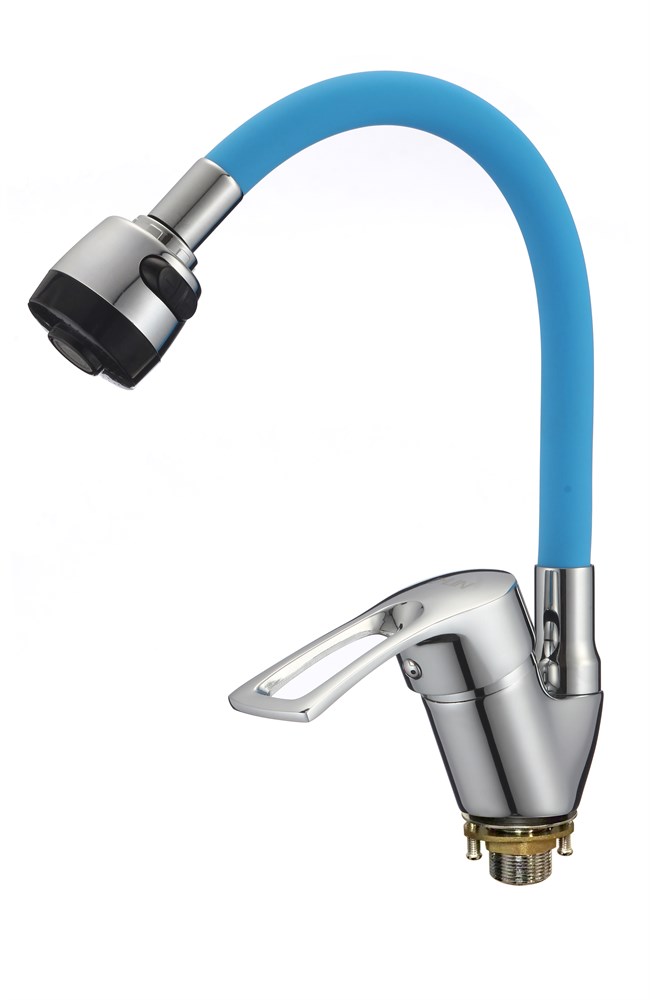 Смеситель для кухни с силиконовым изливом D150422-6T, синий и хром