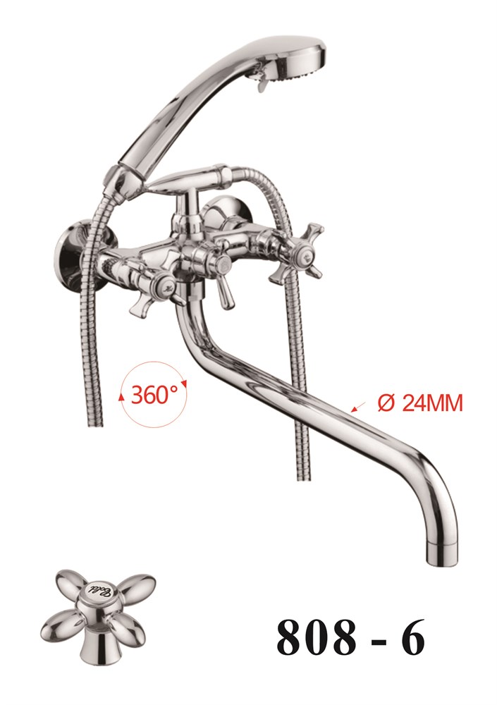 Смеситель для ванны с круглым изливом D145808-6, шланг, лейка, крепление для лейки, эксцентрик