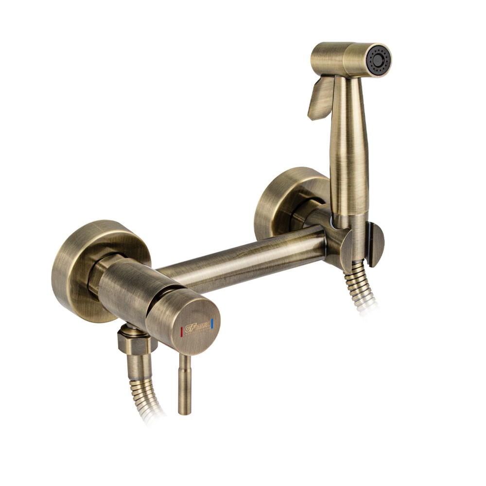 Смеситель с гигиенической лейкой, из нержавеющей стали, круглый корпус, цвет БРОНЗА.