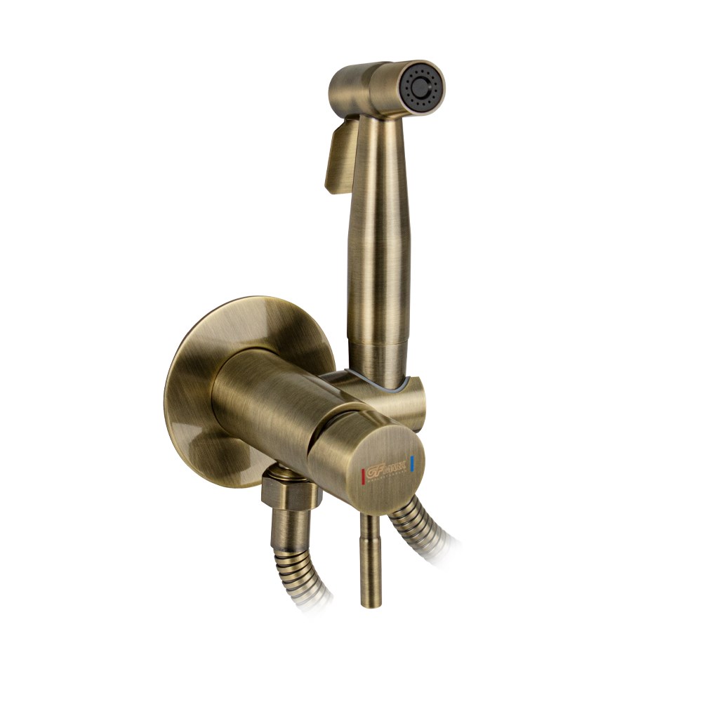Смеситель с гигиенической лейкой встраеваемый, из нержавеющей стали, круглый корпус, цвет БРОНЗА .