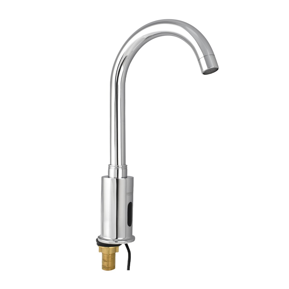 Смеситель сенсорный для раковины, высокий С-образный излив, латунный корпус, цвет ХРОМ.