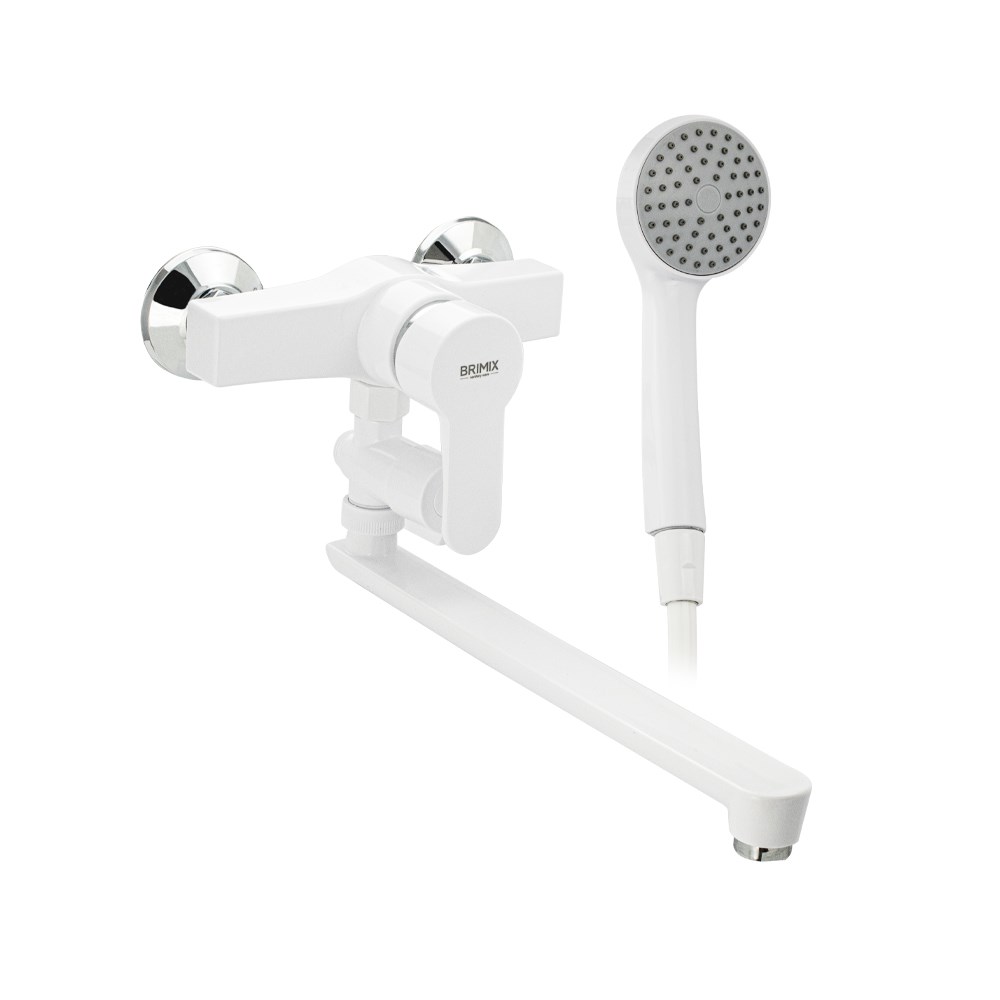 Смеситель в ванную длинный излив с дивертором, шаровый из высокопрочного пластика АБС - БЕЛЫЙ