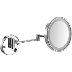 Выдвижное увеличительное зеркало для ванной с LED подсветкой. Трехкратное увеличение. Изготовлено из хромированной латуни. Оборудовано штекером и кабелем длиной 80 см. Выключатель освещения находится на крепежной пластине.