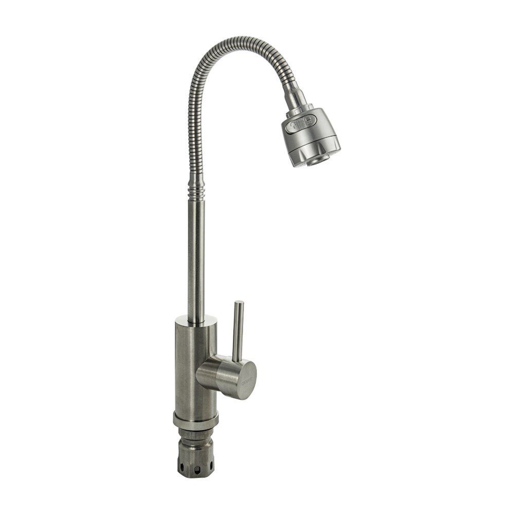 Смеситель для кухни, гибкий излив, из нержавеющей стали марки 304, с двухрежимным аэратором, цвет САТИН.