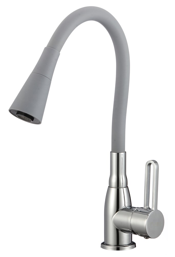 Смеситель для кухни из нержавеющей стали с гибким силиконовым изливом (серый)