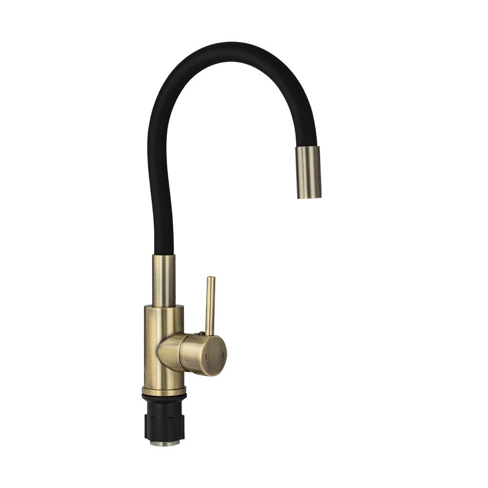 Смеситель для кухни, с гибким черным изливом, из нержавеющей стали марки 304, цвет корпуса БРОНЗА.