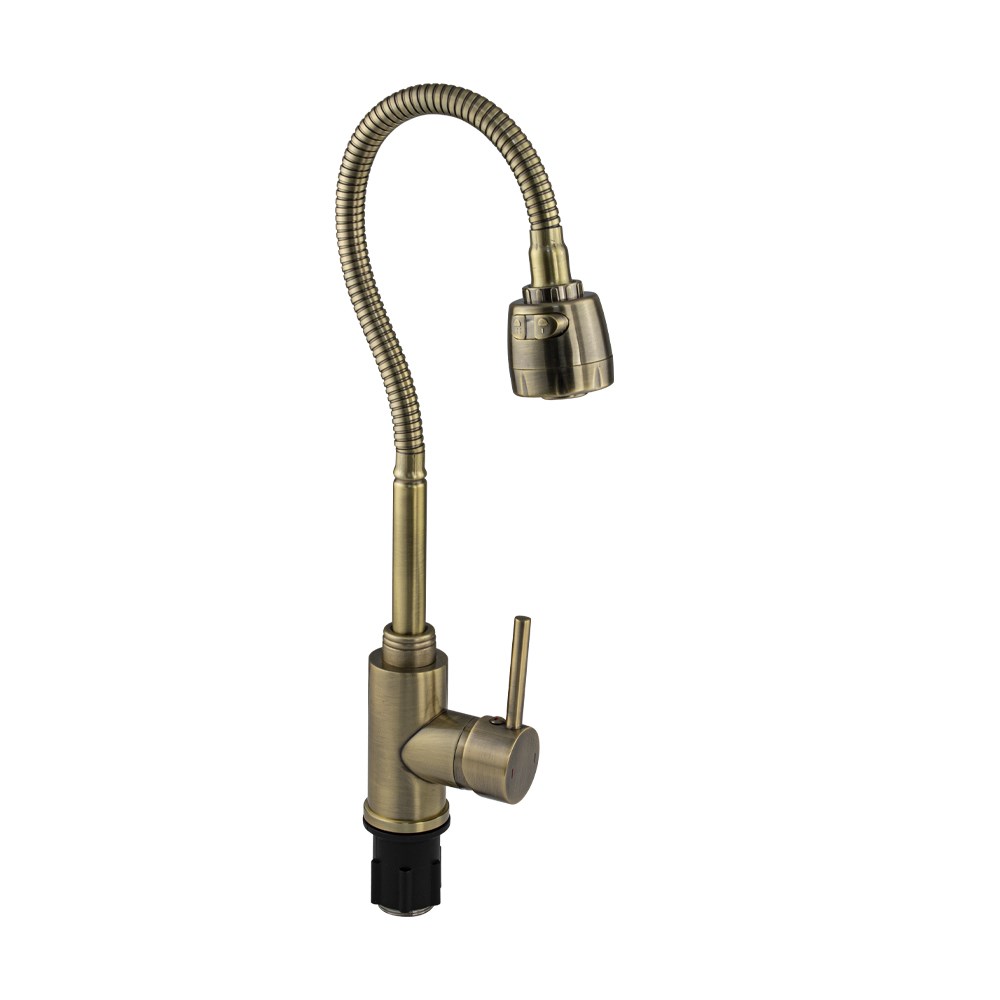Смеситель для кухни, с гибким изливом, с двухрежимным аэратором, из нержавеющей стали марки 304, цвет БРОНЗА.