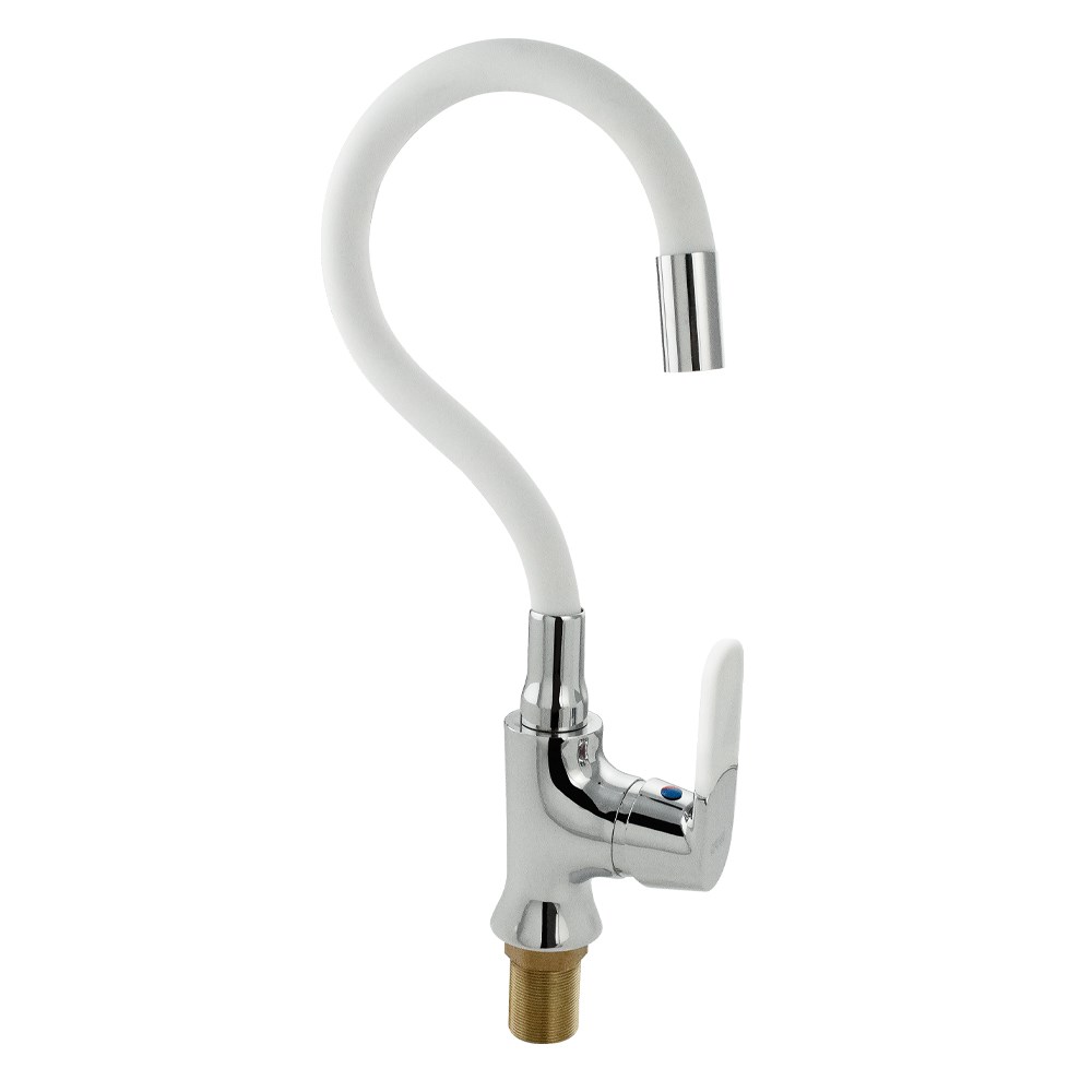 Смеситель для кухни с гибким изливом, шаровый, БЕЛЫЙ излив, корпус ХРОМ.