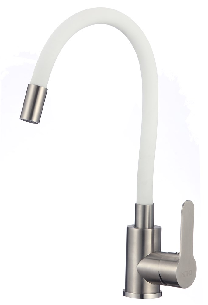 Смеситель для кухни с гибким силиконовым изливом H155316-3, белый и сатин
