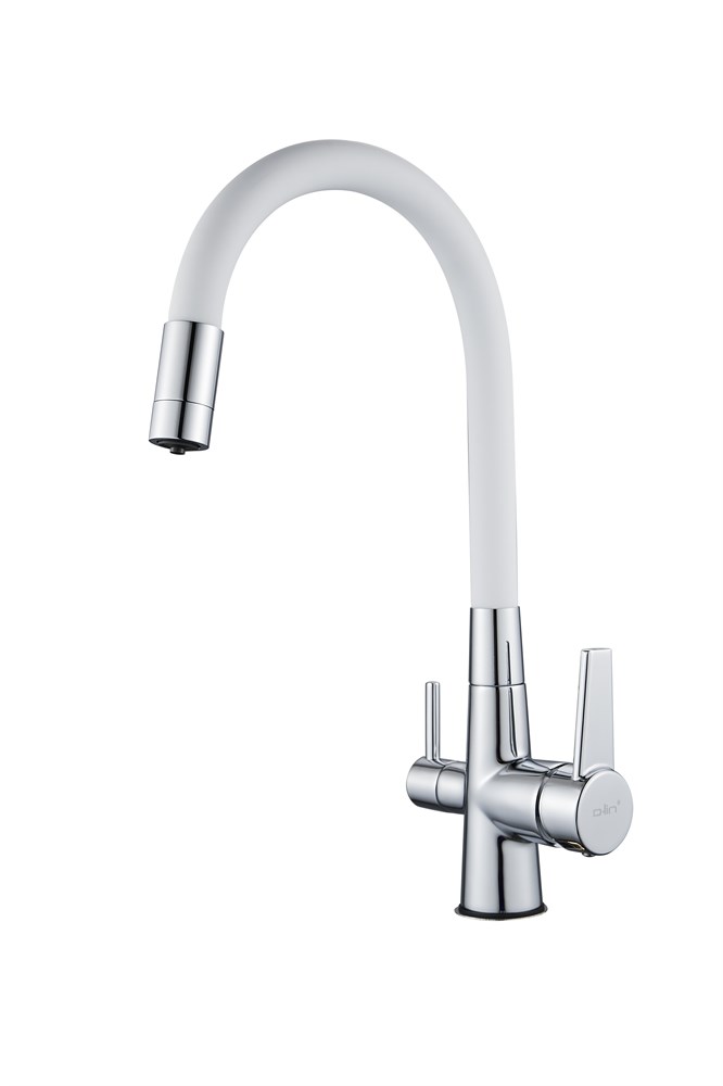 Смеситель для кухни с подключением фильтра питьевой воды с силиконовым изливом D159317-3, хром и белый