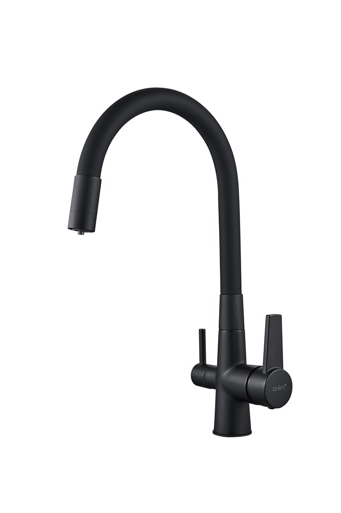 Смеситель для кухни с подключением фильтра питьевой воды с силиконовым изливом D159317-4A, чёрный