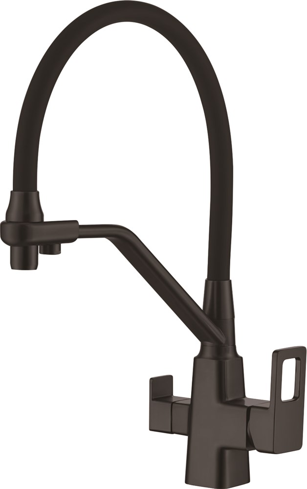 Смеситель для кухни с подключением фильтра питьевой воды с силиконовым изливом D159320-A, чёрный