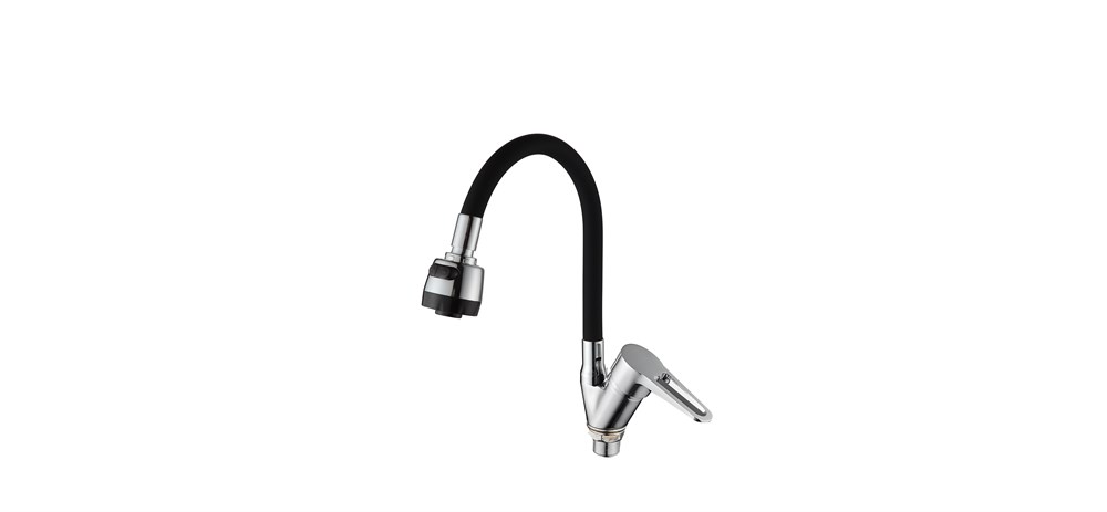 Смеситель для кухни с силиконовым изливом D150303-1T, чёрный и хром