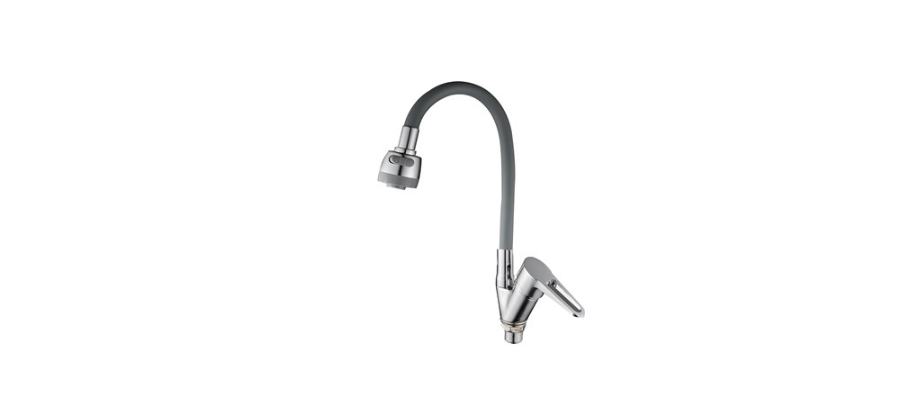 Смеситель для кухни с силиконовым изливом D150303-2T, серый и хром