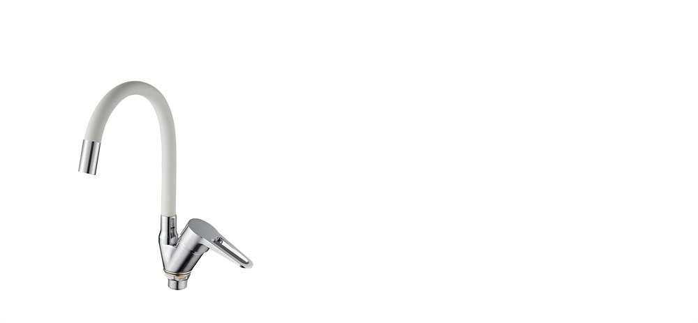 Смеситель для кухни с силиконовым изливом D150303-3, белый и хром