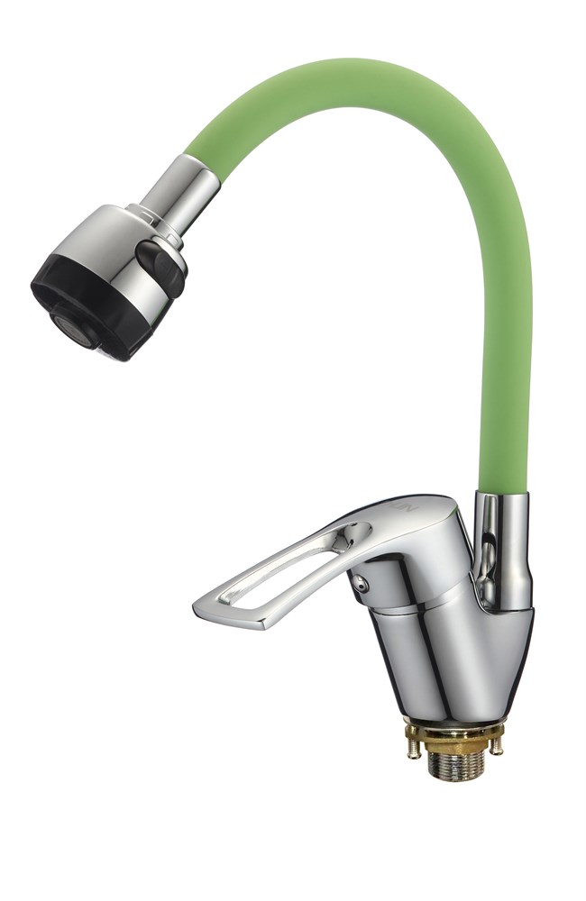 Смеситель для кухни с силиконовым изливом D150422-5T, зелёный и хром
