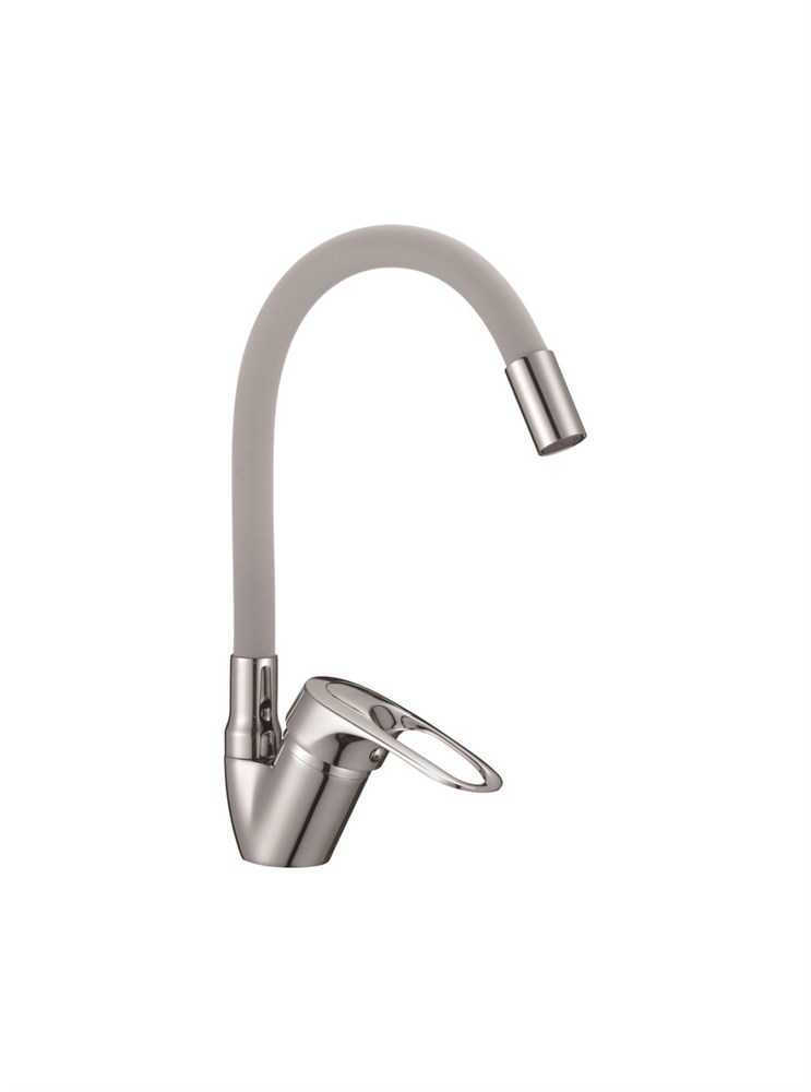 Смеситель для кухни с силиконовым изливом D150628-2C, серый и хром
