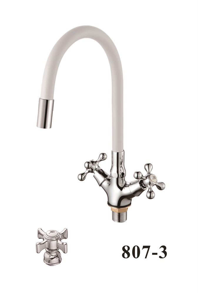 Смеситель для кухни с силиконовым изливом D153807-3, белый и хром, угол поворота 180°