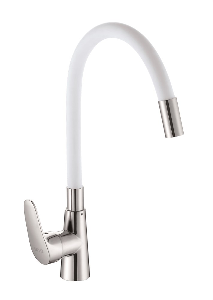 Смеситель для кухни с силиконовым изливом D155302-3, белый и хром