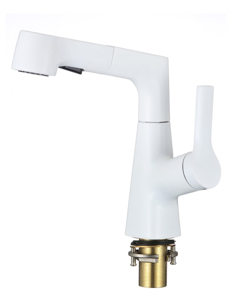 Смеситель для раковины/кухни с выдвижным изливом D158374-C, белый
