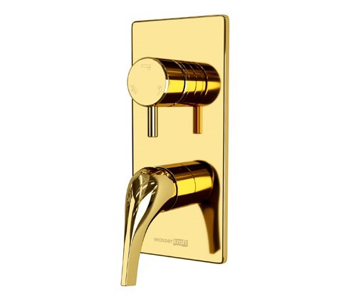 Корпус смесителей произведен из высококачественной латуни с содержанием меди не менее 59%. Латунь является наилучшим материалом для изготовления корпуса смесителей, характеризуется долговечностью и прочностью. PVD-покрытие "глянцевое золото"