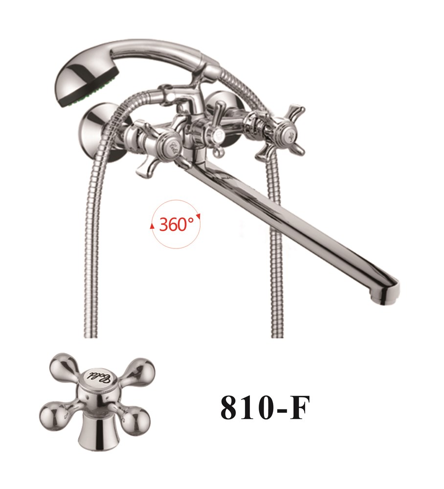 Смеситель для ванны с плоским изливом D145810-F, шланг, лейка, крепление для лейки, эксцентрик
